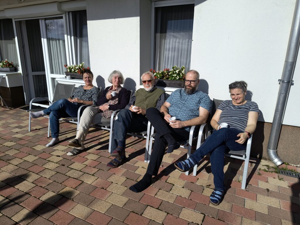 „A festői tájban megmerítkezhettünk Isten nagy szeretetében. A szivárvány alatt és a rókák, szarvasok között dicsérhettük Teremtőnk jóságát, végtelen szeretetét, rácsodálkozhattunk teremtésének gazdagságára, színességére, gyümölcseire. A lelkigyakorlatot Copf Klára TOR nővérünk tartotta.„Barátságban az Idővel – életművészet” volt az összefoglaló címe az előadásainak. Különféle imamódokba vezette be a közösség tagjait, hogy aztán itthon ki-ki azt gyakorolja, amelyik neki a legjobb, a leggyümölcsözőbb. Az idő, amely Isten ajándéka, számunkra feladat és lehetőség. A csendben megtapasztalhattuk Isten közelségét és barátságát, a reggeli átmozgató gyakorlatokban érezhettük saját rozsdás testünket, a megosztásokban pedig rácsodálkozhattunk egymás gazdagságára, mélységére. Nagyon köszönjük Klára nővérnek a mély gondolatokat, a fantasztikus helyet és hárfájának csodálatos hangjai.”